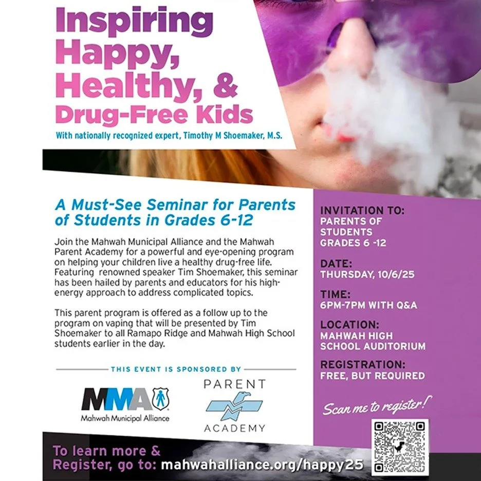 The Mahwah Municipal Alliance (MMA) is proud to announce a generous donation from the Ramapo College Foundation, made during their outdoor concert series recently. This donation, along with contributions from all our supporters, plays a…